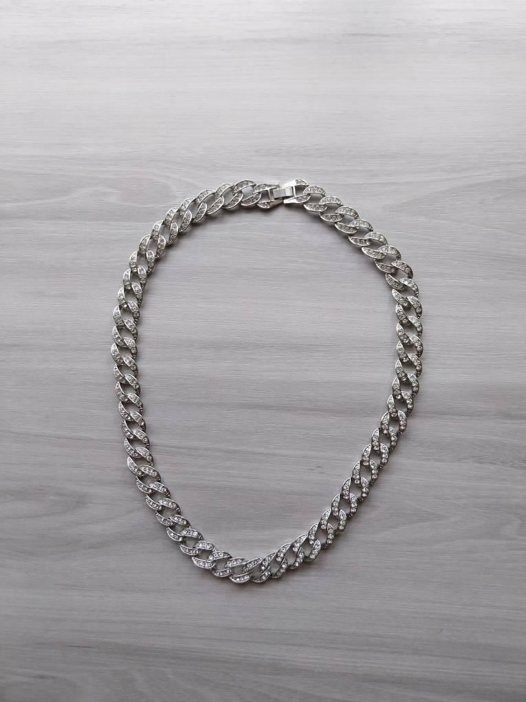 Keywords: iced Cuban chain, silver Cuban link, hip hop necklace, 13mm chain, mens curb chain, stainless steel jewelry, cuban link chain